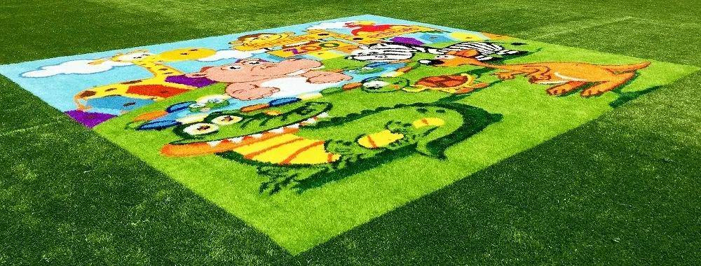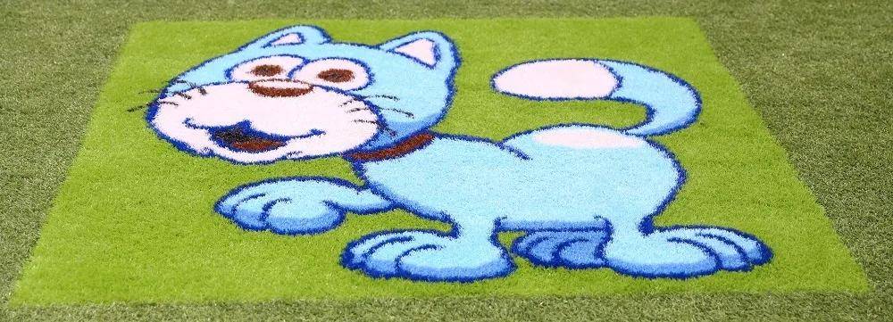 幼儿园草坪是休闲草坪的一项重要分支,除了必须具有一般休闲草坪的优势以外,针对服务对象是幼儿园、儿童的这一群体特性,还需要更加具有美观性和趣味性的特点。人造草坪厂家编制各种彩色图案和卡通形象融入在绿色草丝的草坪上,之形成一个整体,无需拼接,一次铺装,营造出童话般的户外运动世界。