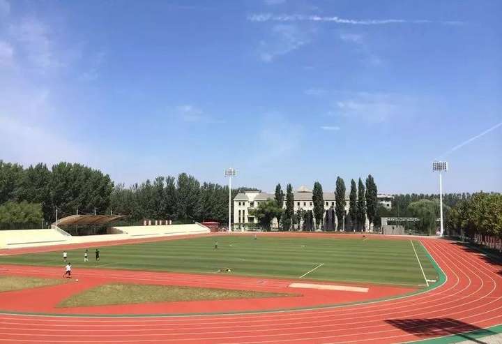 位于环行跑道的中间,其长为100米,宽64米,设有二副球门,为可移动式球门;足球场采用50mm8800dtex×14000针进口人造草丝,分为双色。